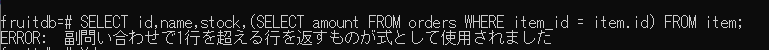 ここでの副問い合わせは1行のみを返すものでなければなりません。