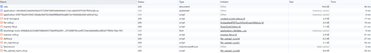 遷移のたびにcats、dogsの一覧表示に必要なcss,jsファイルなどが読み込まれていることが分かります