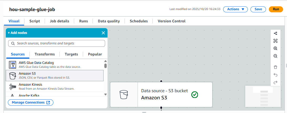 今回のGlueノーコードETLジョブでは、GUI操作だけで以下の処理を実現しました。